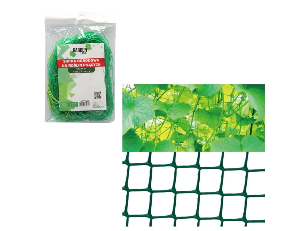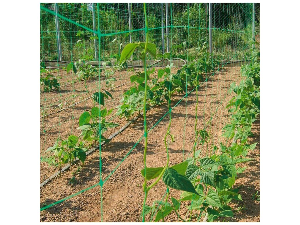 Robustní síť pro popínavé rostliny s velkými oky. Síť je vyrobena z pevného plastu odolného vůči UV záření (polypropylen).