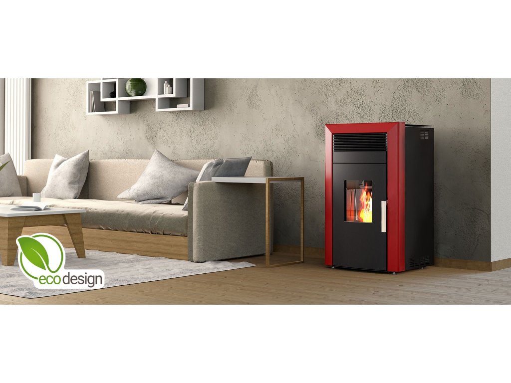 ALFA PLAM, peletová kamna s výměníkem COMMO 12 ECO, 12 kW, červená (RAL 3004 mat)
