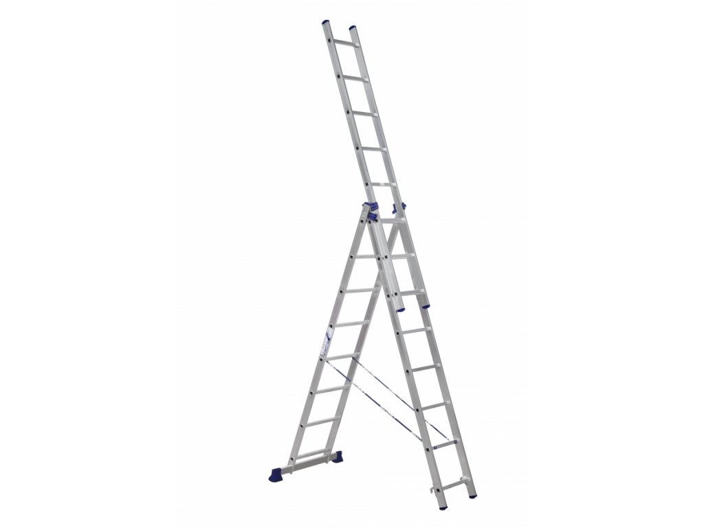 Třídílný univerzální hliníkový žebřík jsou nepostradatelným pomocníkem v každém domě, chalupě nebo na zahradě.