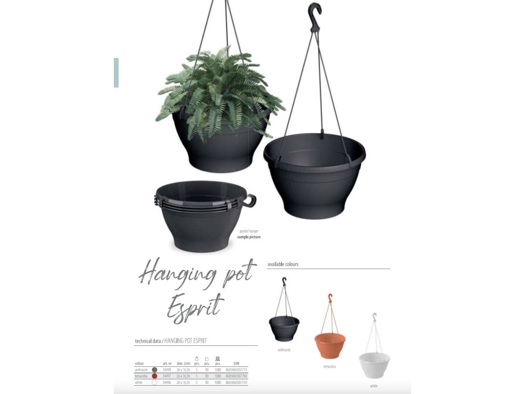 Gardino, Květináč ESPRIT závěsný průměr 26 cm, vysoký 16,5 cm, antracit