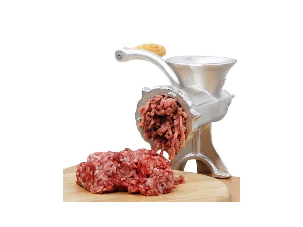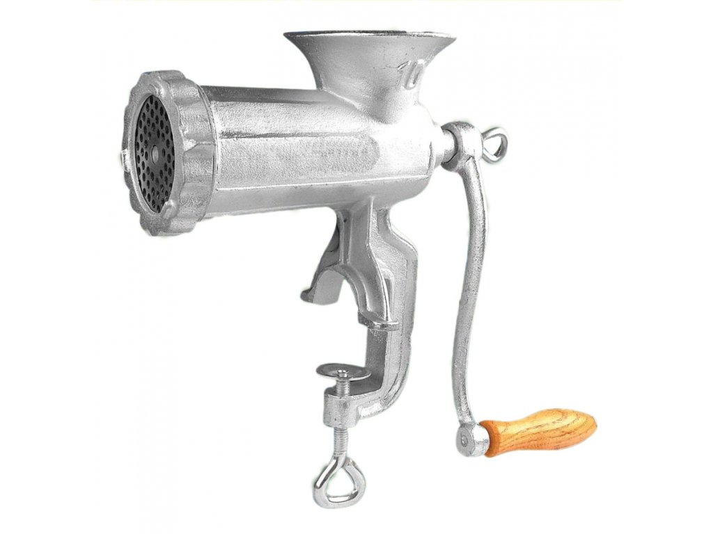 Mechanický mlýnek na maso č.10 je vyroben z šedé slitiny s pocínovaným potravinářským povrchem.