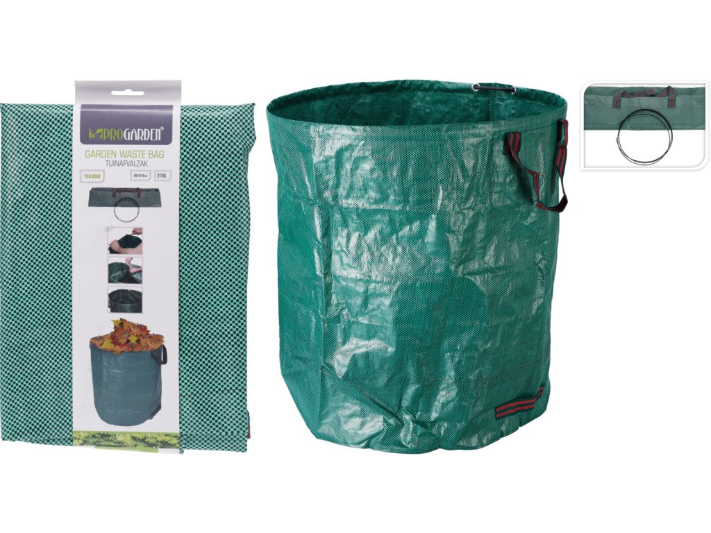 Zahradní pytel je ideálním řešením pro snadné čištění zahradního odpadu, jako jsou listí, tráva a odpad z prořezu. Tento skládací pytel na odpadky má kapacitu 270 litrů. Díky svému tvaru a pevným rukojetím se snadno naplňuje, přenáší a vysypává. Pevný materiál zajišťuje, že pytel vydrží ostré větve a další zahradní nečistoty, přičemž je snadné jej po použití složit pro kompaktní skladování. Perfektní pro efektivní údržbu zahrady bez nepořádku.