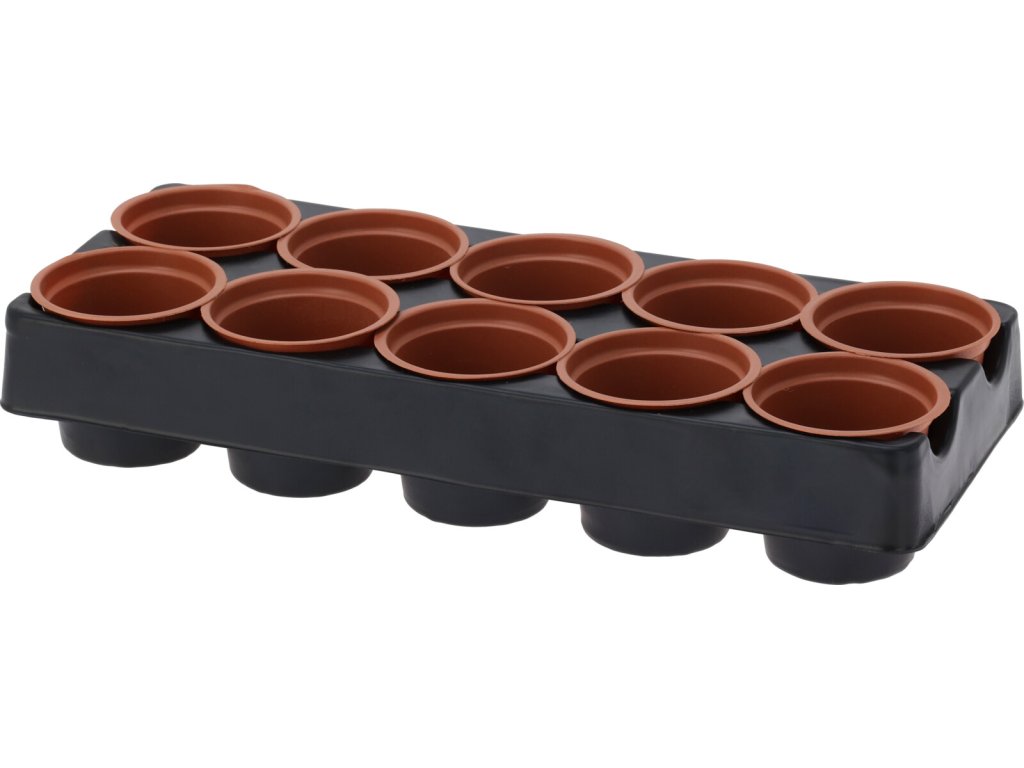 Obsah jednoho balení: 1x šedý tác, 10x květináče (6 cm)