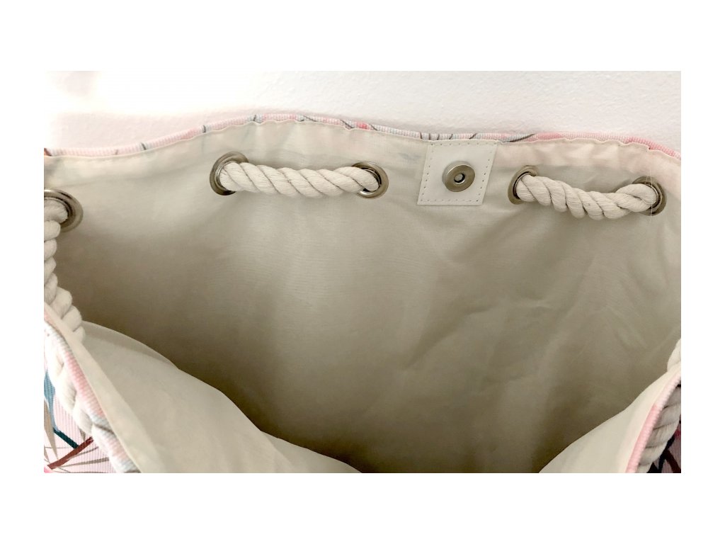 Taška má stylová námořnická uzlová ucha dlouhá 60 cm (vysoká 30cm), díky nim ji stačí pohodlně přehodit přes rameno a jít.