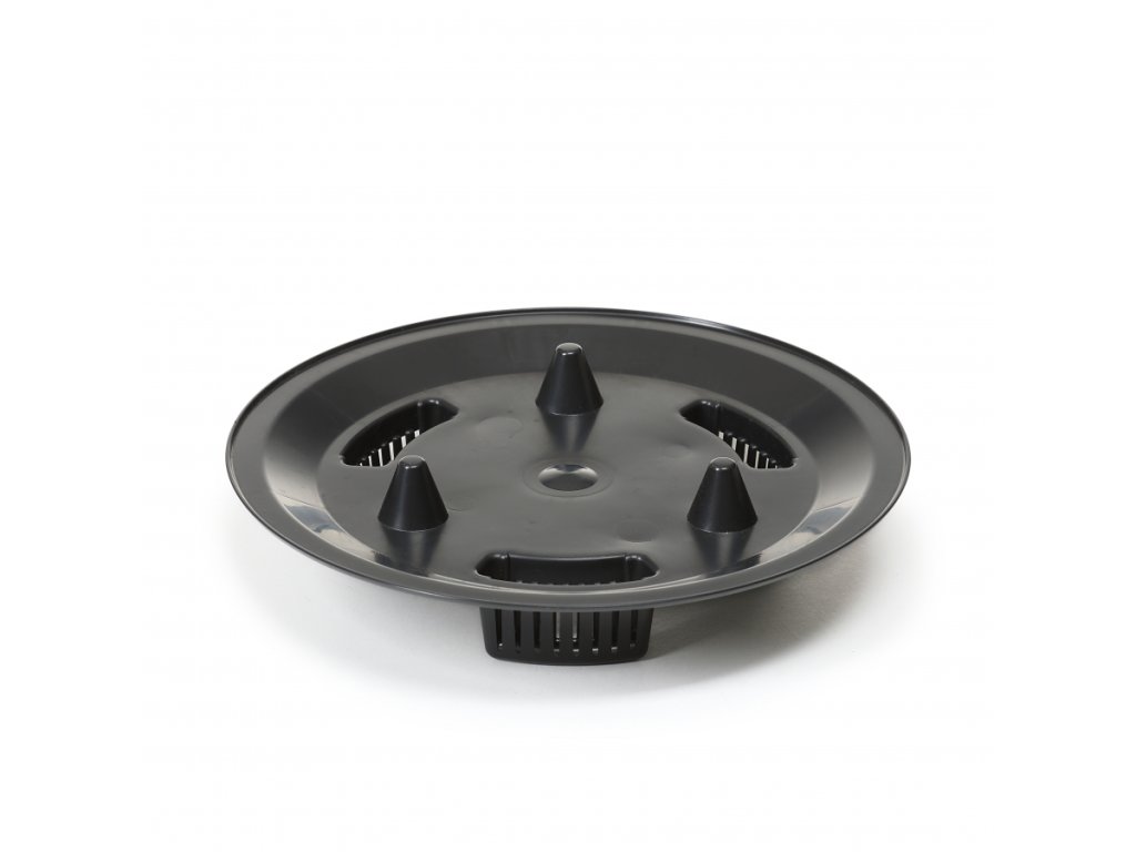 Na dně mísy je plastový rošt, který zachycuje vodu a tím dodává stálou vláhu květinám a zabraňuje uhnívání kořínkům.