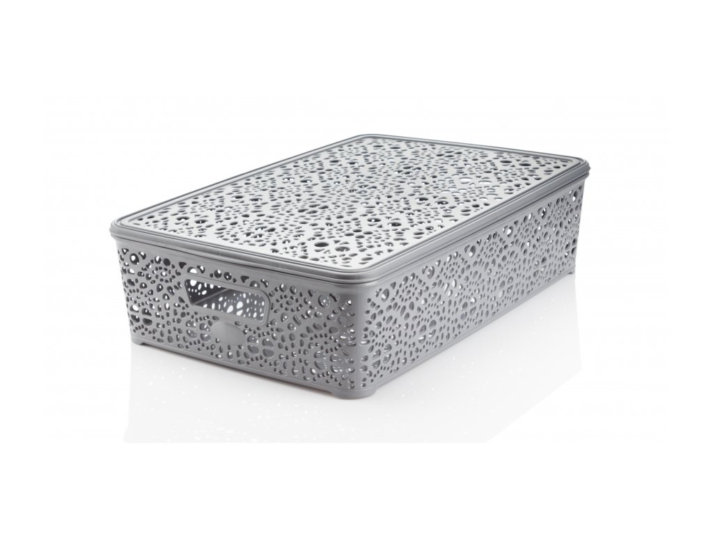 Mega Plast, Košík MONAKO L s víkem, 10,2 x 40,3 x 27 cm, šedá metalíza