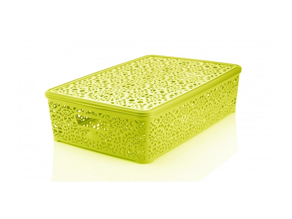 Mega Plast, Košík MONAKO L s víkem, 10,2 x 40,3 x 27 cm, švětle zelený