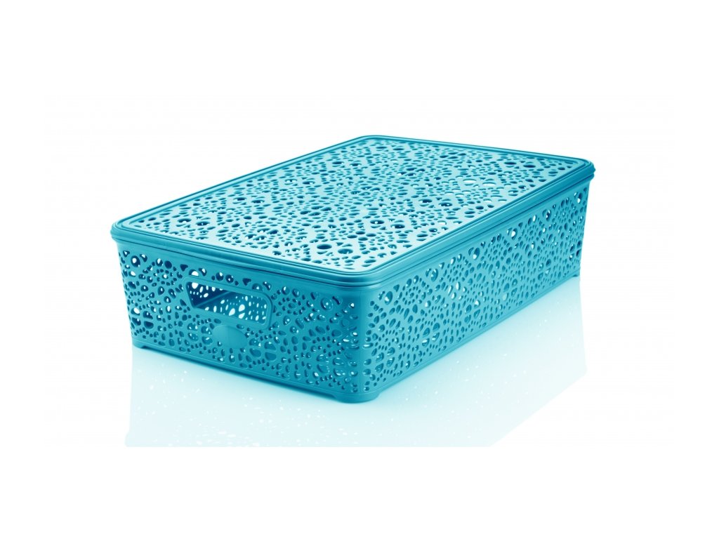 Mega Plast, Košík MONAKO L s víkem, 10,2 x 40,3 x 27 cm, tyrkysový