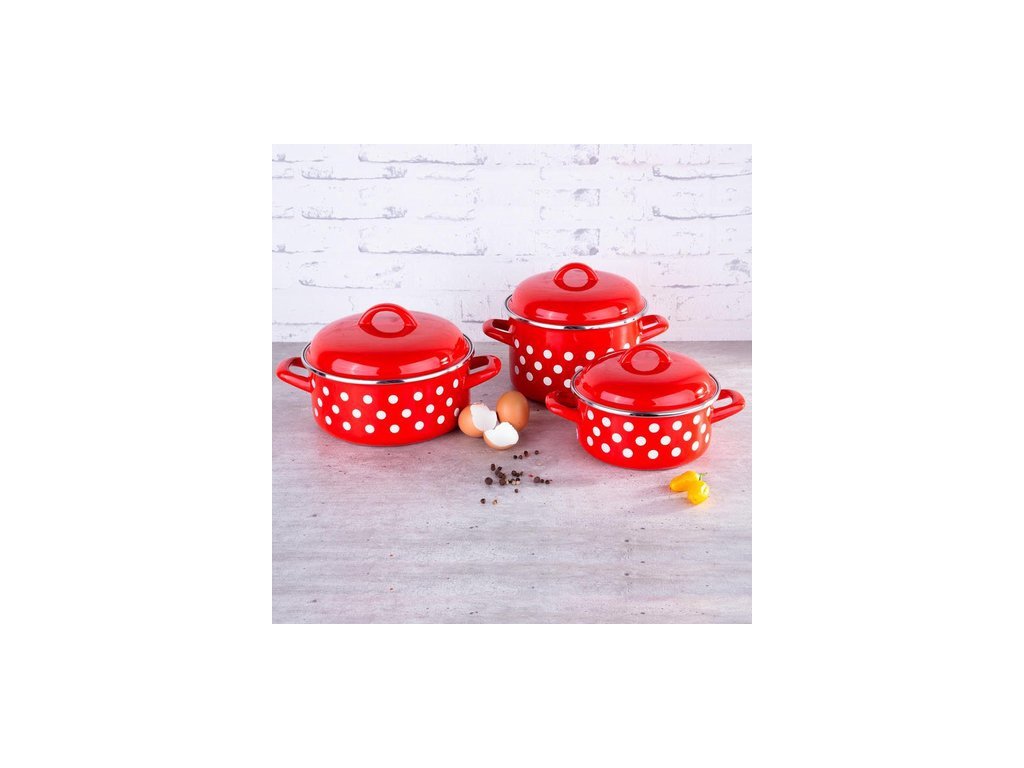 Nabízíme Vám nestárnoucí klasiku na trhu se smaltovaným nádobím - červené smaltované nádobí s bílým puntíkem. Jedná se o dekor, který je nadčasový a své místo v českých domácnostech nachází již desítky let. O oblíbenosti dekoru svědčí i šíře sortimentu, kterou Vám u těchto výrobků nabízíme. S našimi puntíky tedy můžete pořídit téměř kompletní řadu nádobí, která Vám díky své vysoké kvalitě vydrží sloužit po dlouhá léta.