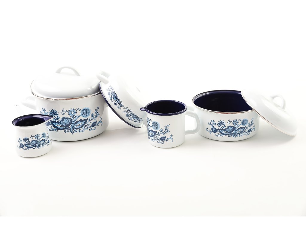 Na výběr je hned z několika velikostí hrnců, kastrolů, hrnků či misek. Oproti minulosti je uvnitř nádobí nanesen tmavě modrý smalt, který perfektně ladí s vnějším modro tiskem, takže design výrobků Cibulák je naprosto dokonalý.