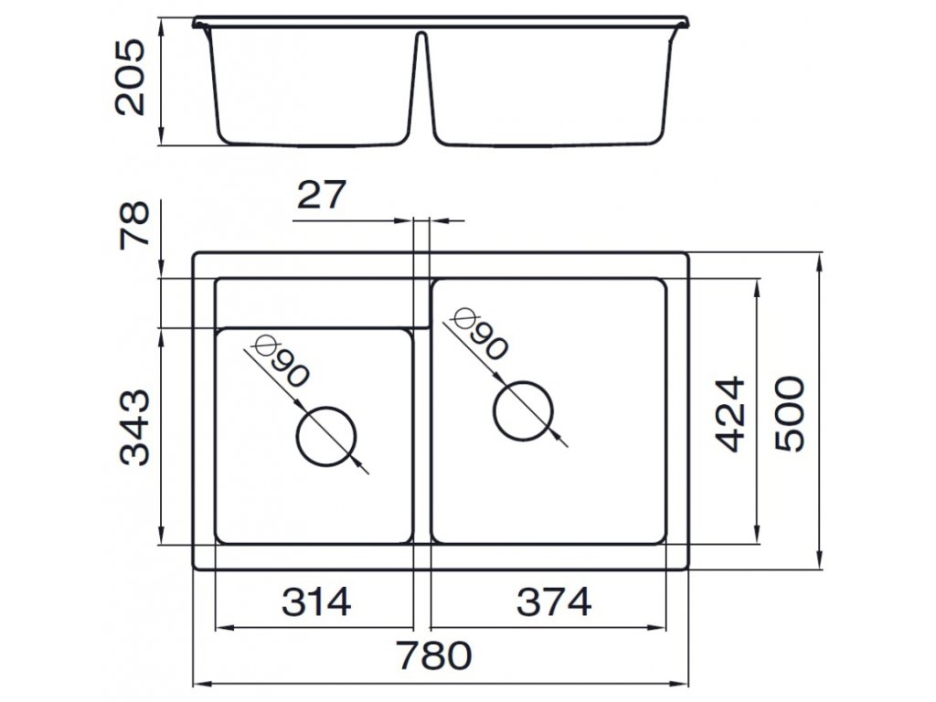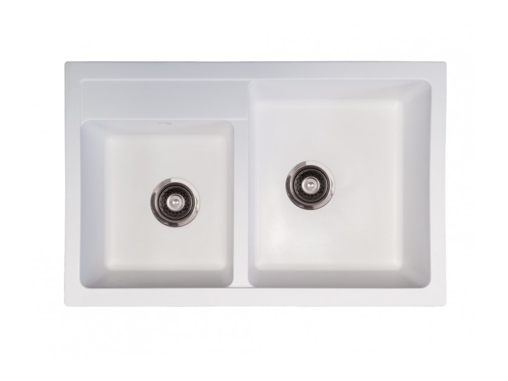 Metalac Inko, dřez X GRANIT QUADRO PLUS 2D, 780 x 500 mm, průměr 90 mm pro sifon, tl. 12 mm (bílý), včetně sifonu