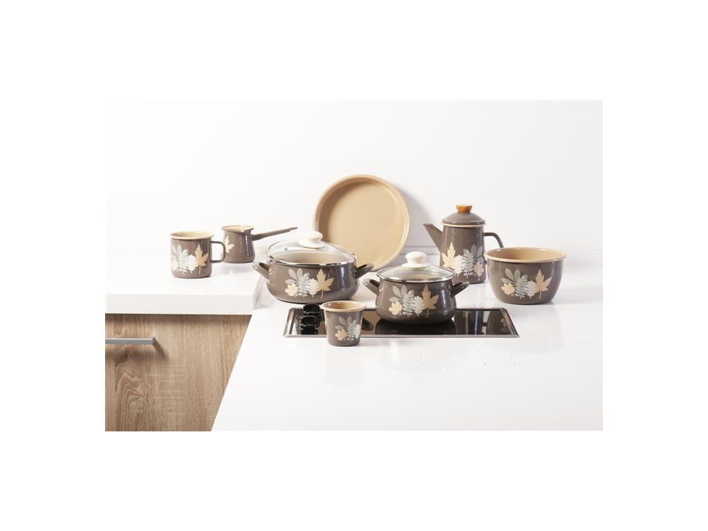 Krásné osvěžení našeho sortimentu kvalitního, smaltovaného nádobí od firmy Metalac. Nádobí Lístky bylo představeno jako jedinečná novinka na mezinárodním veletrhu Ambiente 2020 a stalo se držitelem hned několika ocenění za design. Nádobí je vyrobeno v elegantní hnědo-šedivé vnější barvě v kombinaci s dekorem líbivých lístků a vnitřním hnědo-béžovým smaltem. Jedná se o decentní barvy a dekor, který jistě zaujme každého kdo hledá elegantní výbavu pro svou kuchyni.