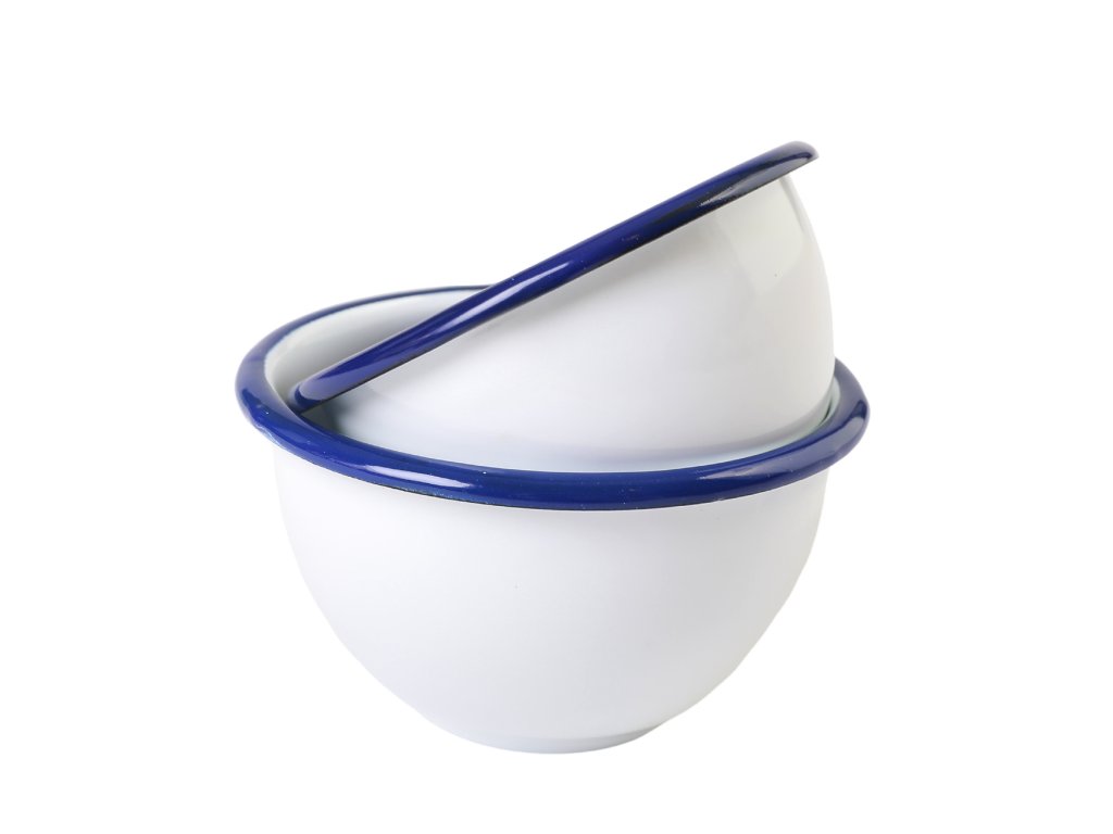 Kvalitní smaltované nádobí v retro stylu. Nádobí má klasickou bílou barvu a je doplněnou modrým lemem tak, jak ho mnozí z nás pamatují ze svého dětství. V řadě nádobí Retro nabízíme širokou škálu doplňků do vaší domácnosti, na chatu či chalupu, takže budou nejen vašimi neocenitelnými pomocníky, ale zároveň poslouží jako originální ozdoba vaší kuchyně.