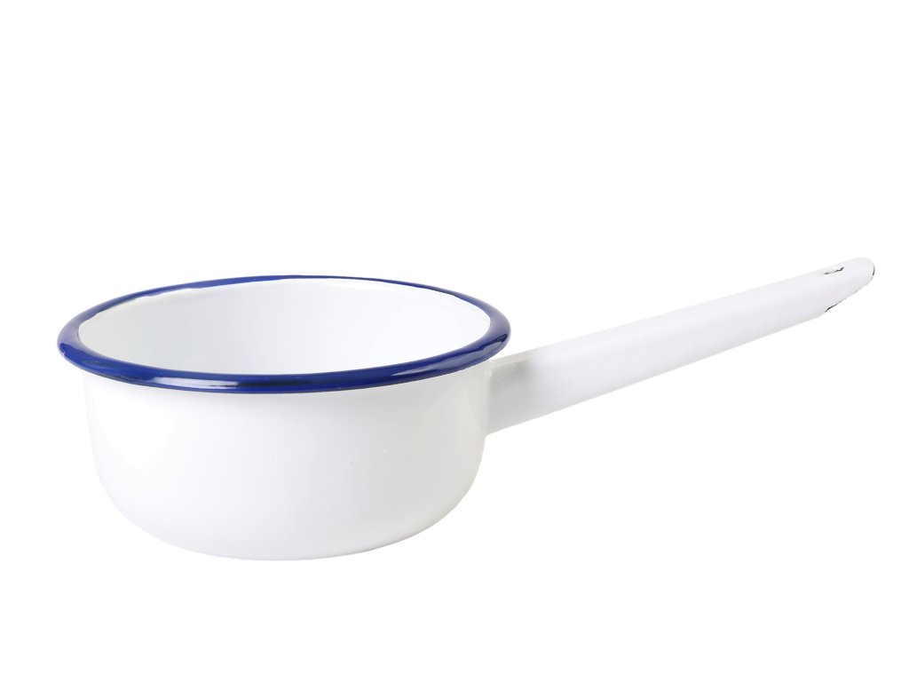 Kvalitní smaltované nádobí v retro stylu. Nádobí má klasickou bílou barvu a je doplněnou modrým lemem tak, jak ho mnozí z nás pamatují ze svého dětství. V řadě nádobí Retro nabízíme širokou škálu doplňků do vaší domácnosti, na chatu či chalupu, takže budou nejen vašimi neocenitelnými pomocníky, ale zároveň poslouží jako originální ozdoba vaší kuchyně.