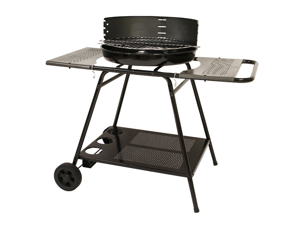 podvozek s bočními policemi a spodní policí s držáky na lahve, háčky jsou souástí balení, gril je vhodný pro 6/8 osob