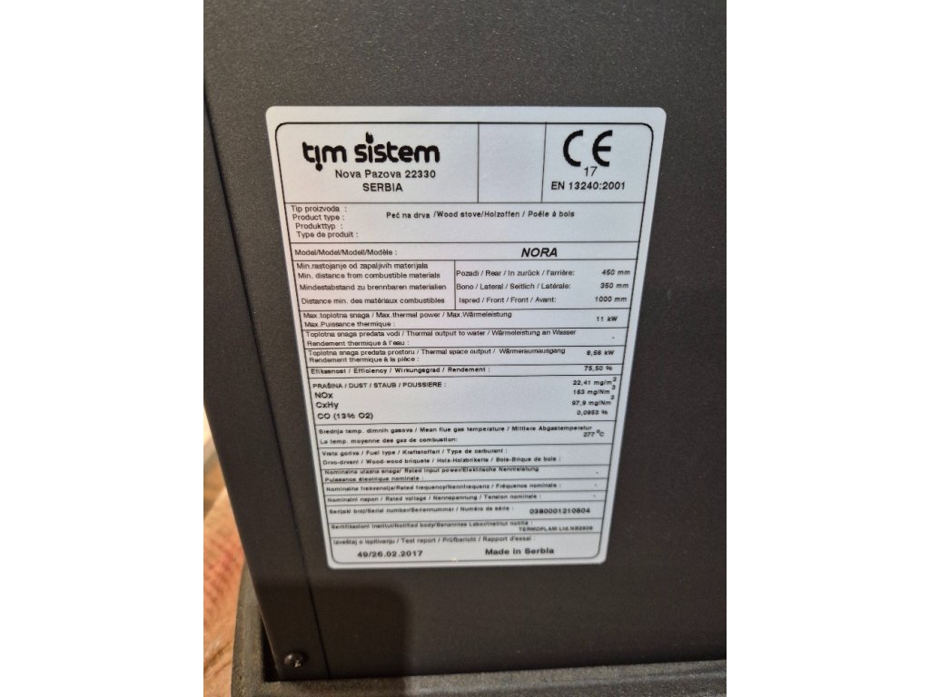 TIM SISTEM, krbová kamna na TP, NORA ECO černá 8,56 kW_MÍRNĚ_POŠKOZENÁ (č.107)
